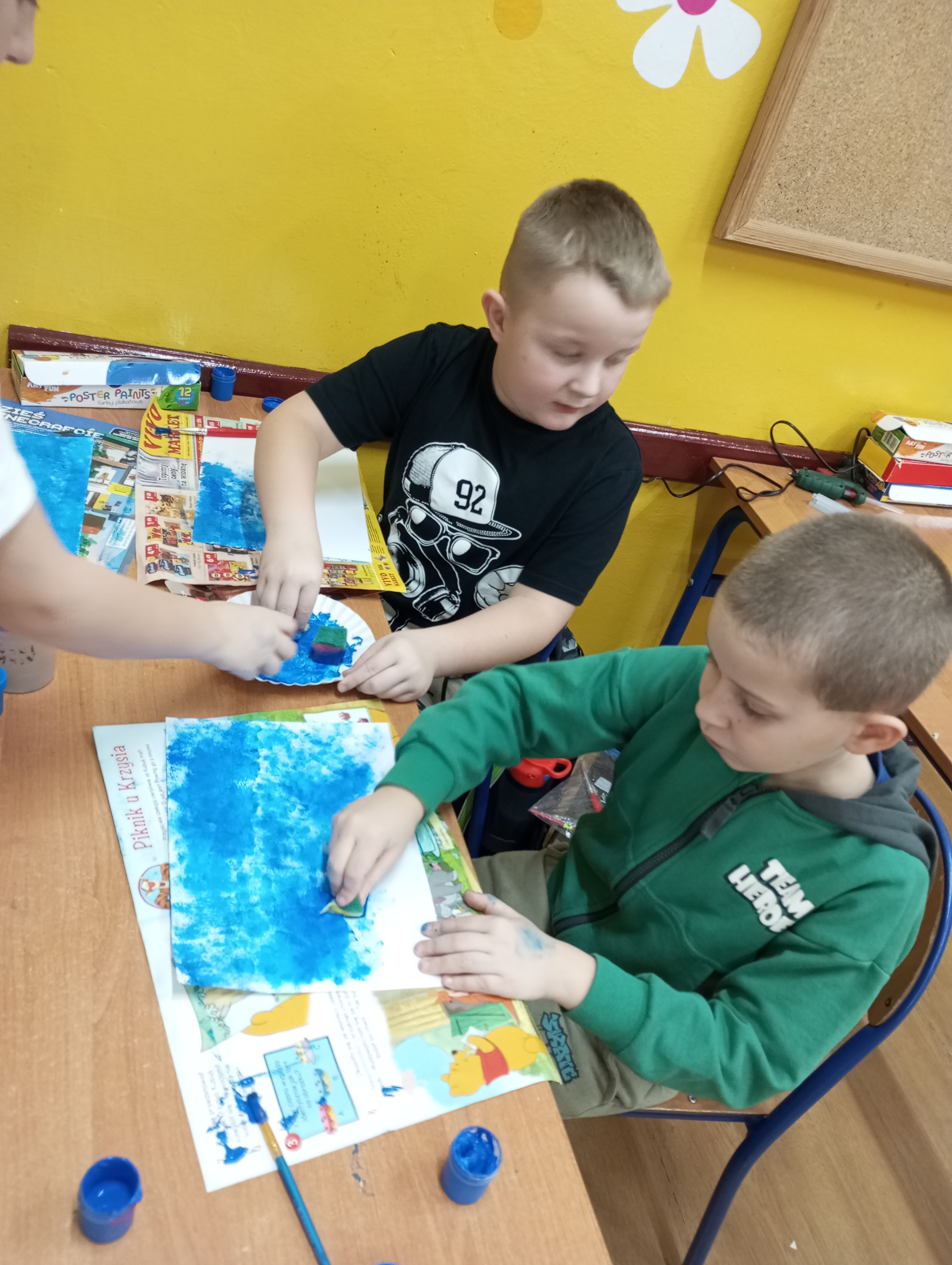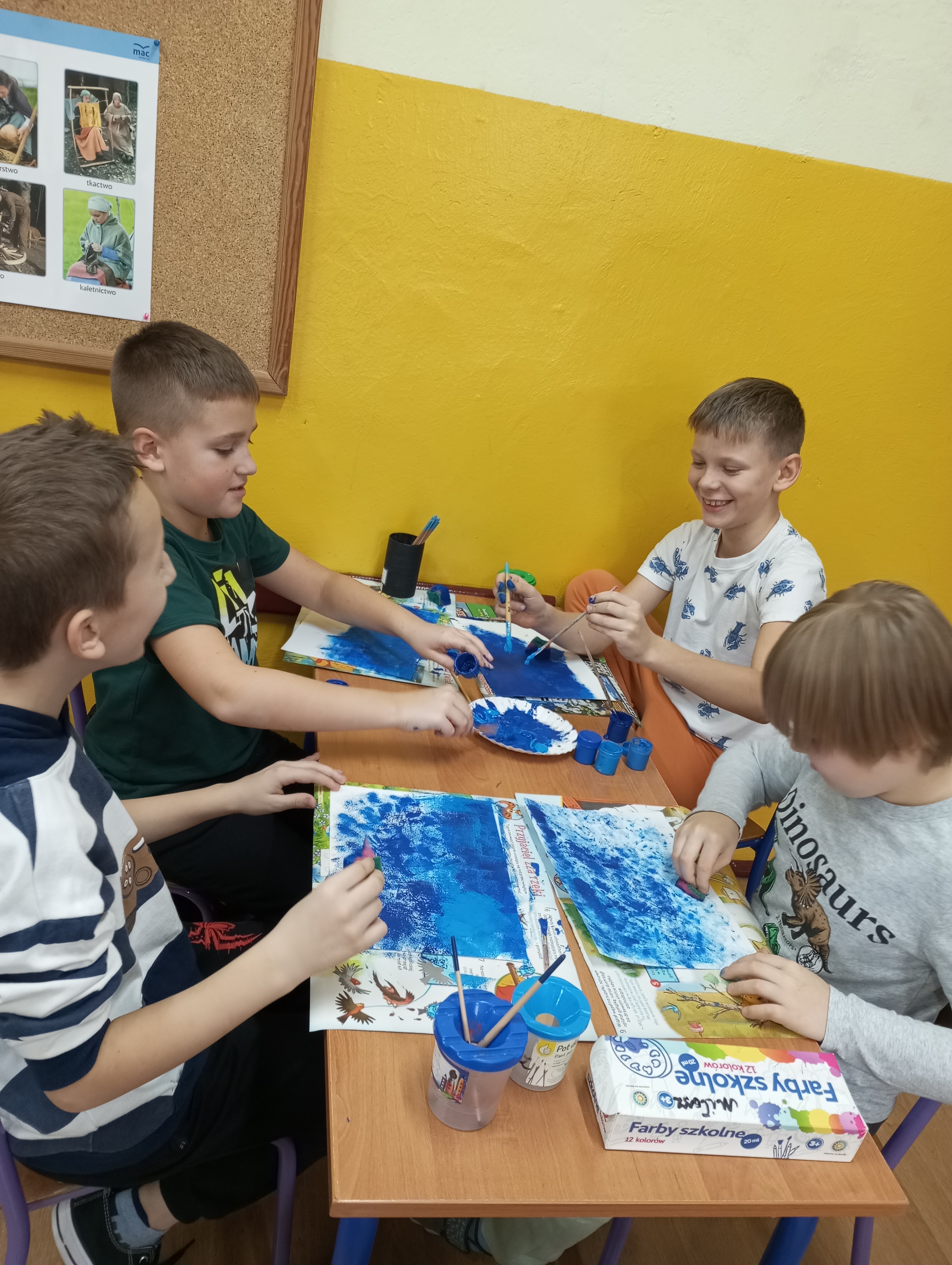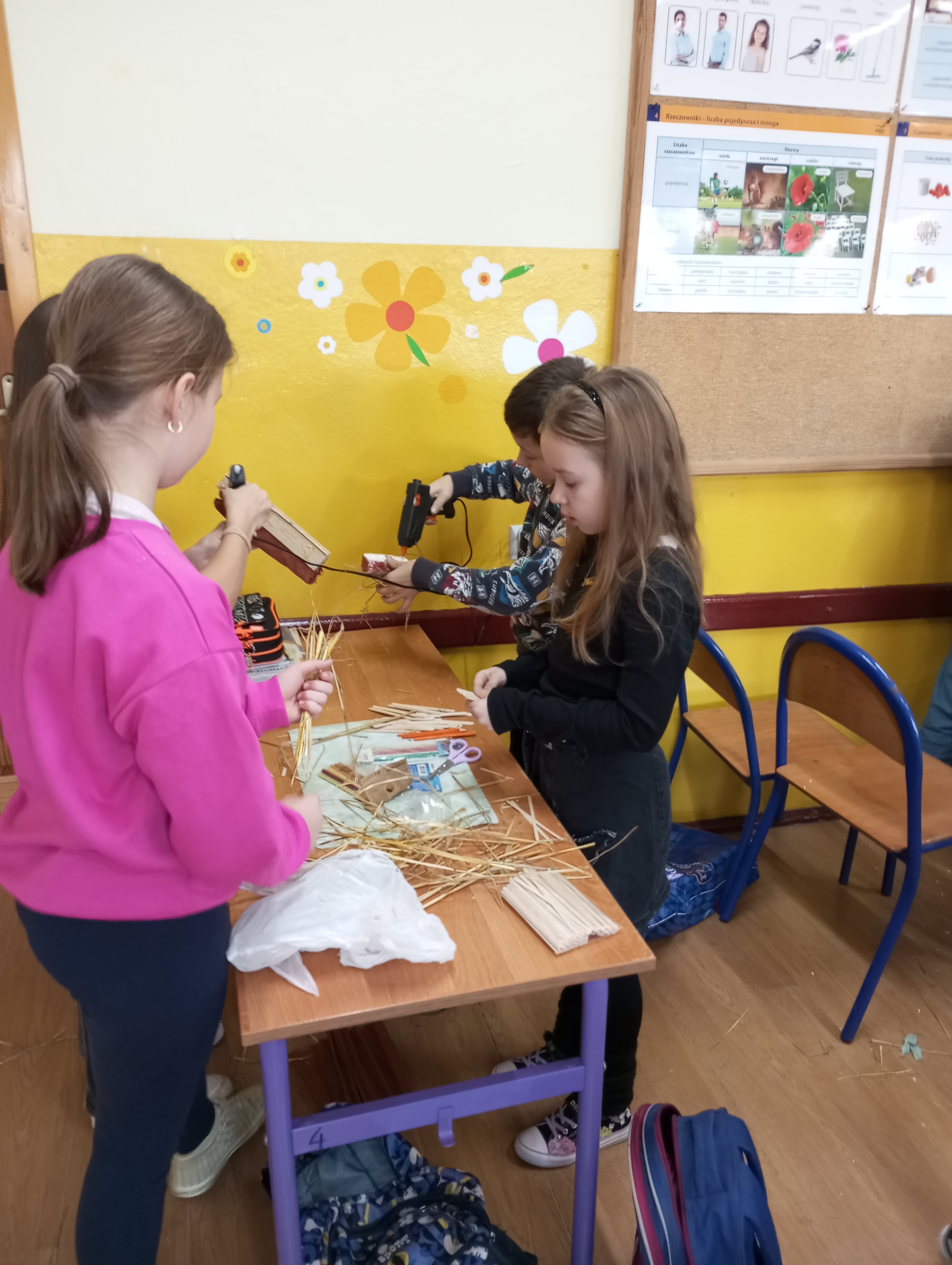 Koła plastyczno - techniczne funkcjonowało od października 2024r. do końca roku szkolnego. Uczęszczało tu 15 uczniów z klasy 3 i dwoje z klasy 1. Zajęcia odbywały się w środy. W czasie spotkań uczniowie poznawali różnorodne techniki oraz pracowali na różnych materiałach. Tematyka zajęć dotyczyła rzeczy bliskich dzieciom, a część z nich była proponowana przez samych uczęszczających. Zajęciom towarzyszyła luźna atmosfera, która wspierała indywidualną twórczość i kreatywność dzieci. Prace wykonane na kółku były prezentowane na tablicy wiszącej na korytarzu.