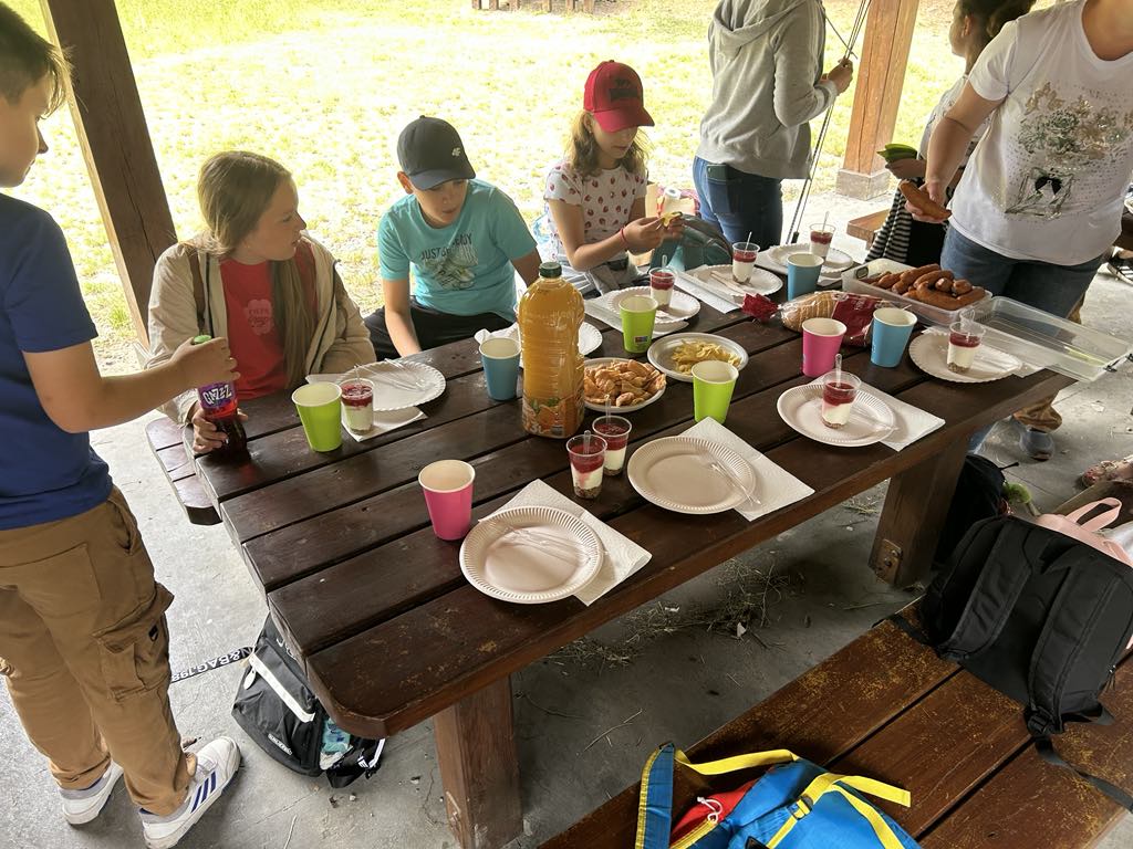 Po spacerze zrobiliśmy sobie piknik przy przygotowanym miejscu z wiatami i ławkami. Był też czas na zdjęcia, odpoczynek i gry na świeżym powietrzu. W drodze powrotnej wszyscy byli zmęczeni, ale zadowoleni.